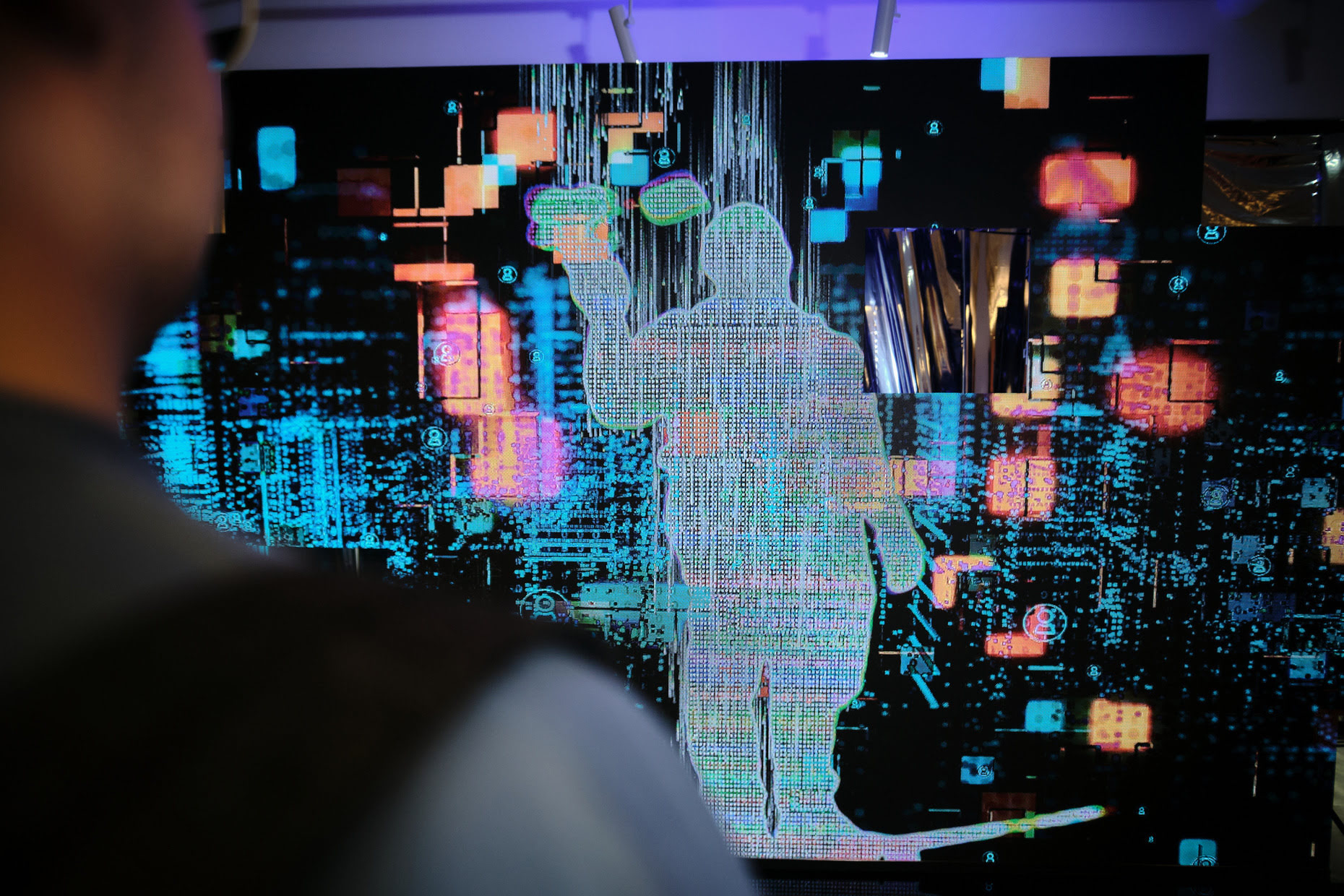 Glitches on the screens complemented the overall look of the installation and influenced the silhouette pattern displayed.