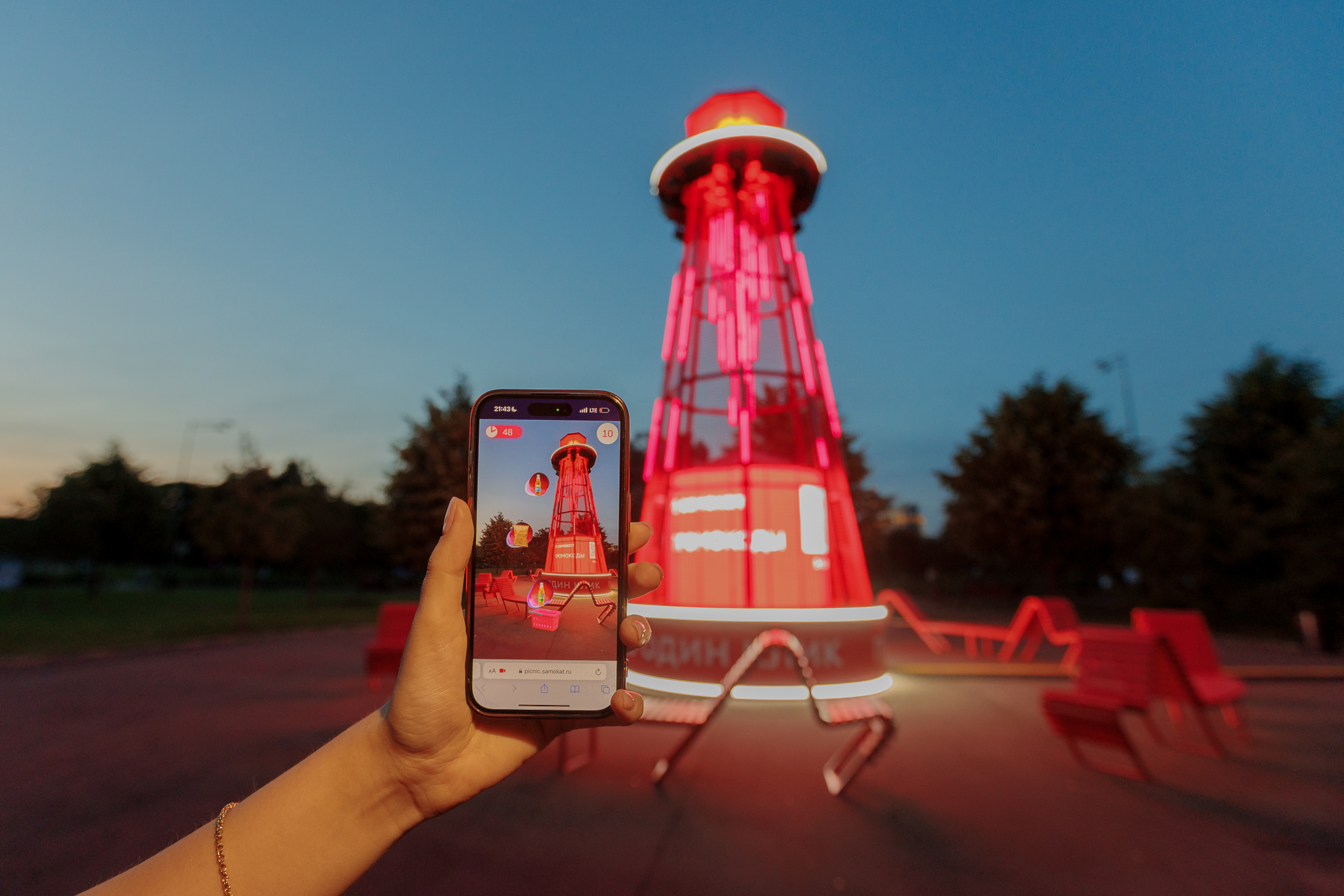 An art lighthouse in the park center — a 360-degree screen surface transforming architectural form into a living kaleidoscope of summer images. Content seamlessly envelops the entire structure, smoothly transitioning between various artistic styles and images. The content plays with visitors' visual associations, transforming summer treats — ice cream, watermelons, berries — into abstract forms and returning them to recognizable silhouettes, creating an ever-changing beacon of summer pleasures.