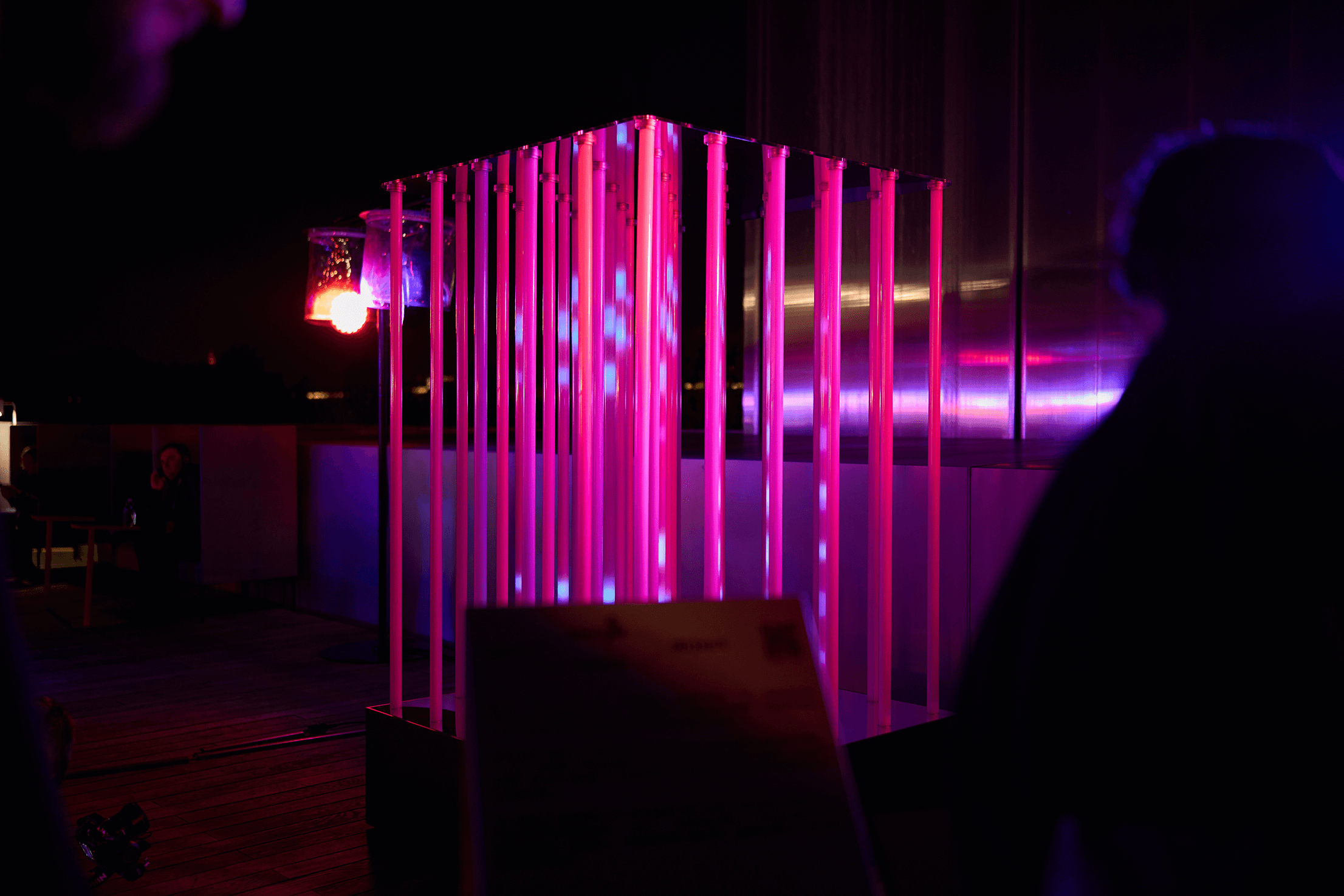 Developed for a single event, the installation became a traveling project. We modified the 2-2.5 meter high construction for mobility and constantly add new functions. Behind the technical solution is a well-designed system of per-pixel light control with an intuitive interface that mimics a programmer's terminal.