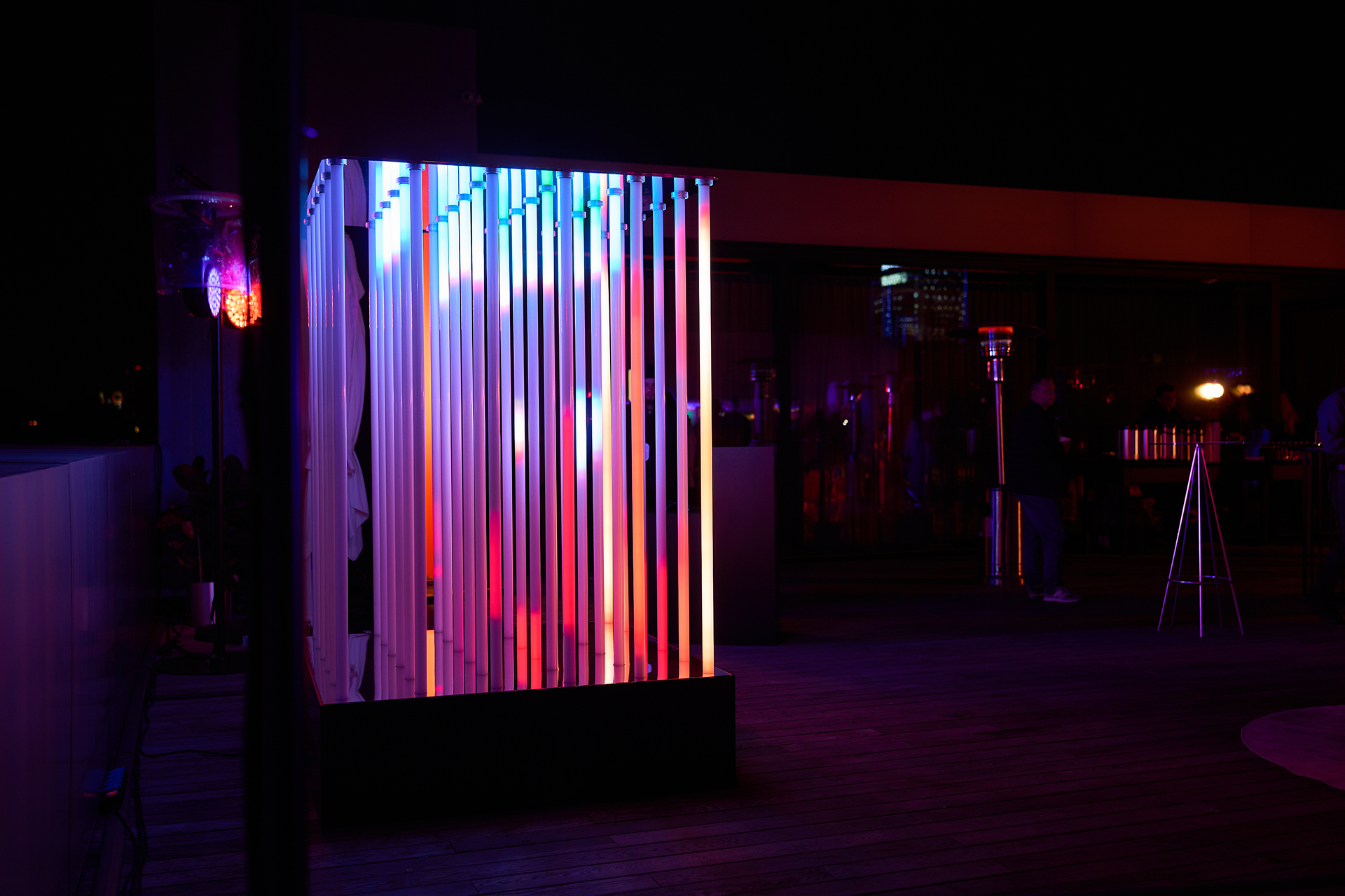 An interactive light installation — a living metaphor for open source. A column of 20-30 vertical LED sticks comes alive from Python commands that visitors enter through a terminal interface. Anyone can program unique light patterns: color individual elements, create pulsation, rainbow waves, or random flashes — and instantly see their contribution to the collective composition.