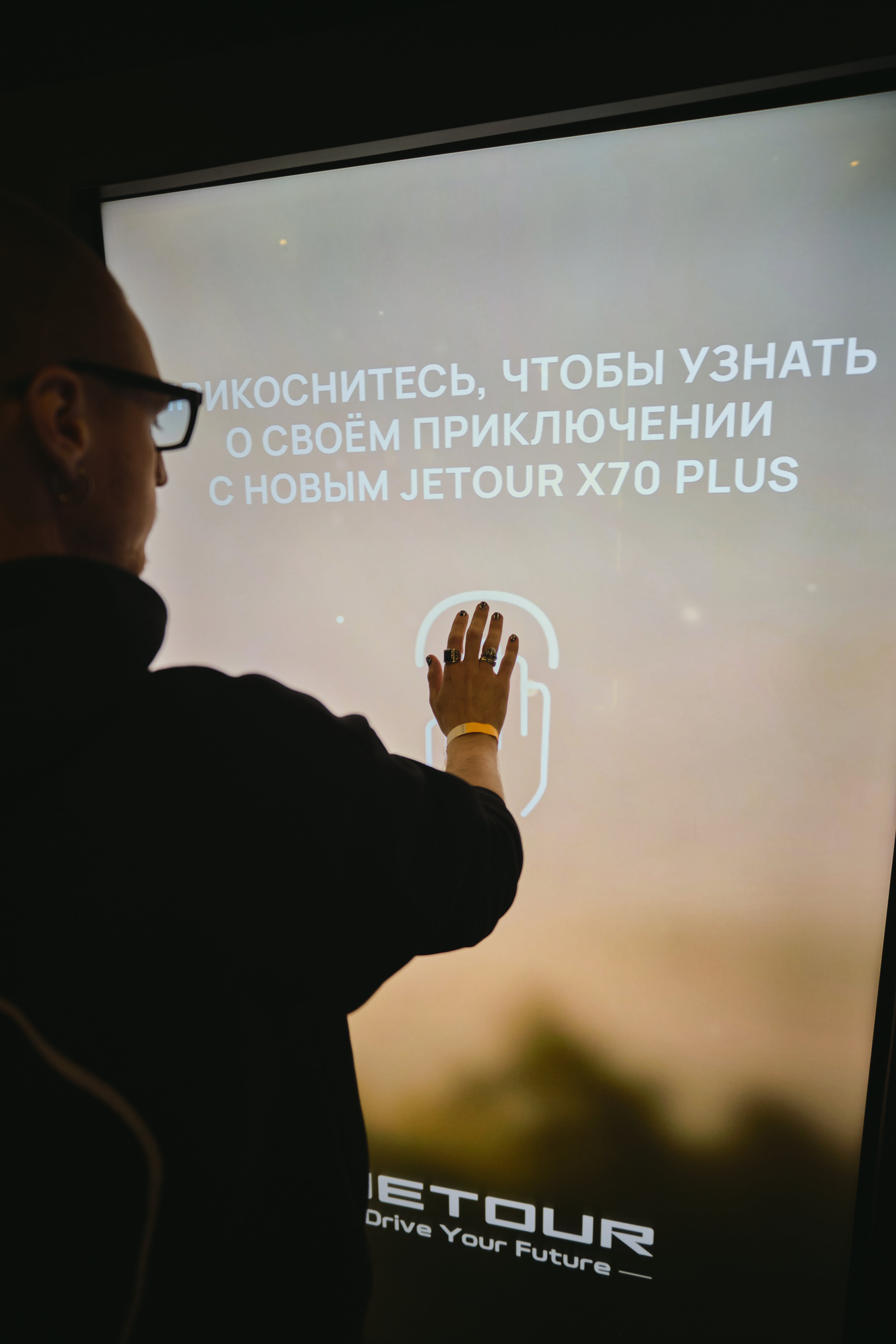 A triptych of interactive installations transforming the Jetour X70 PLUS presentation into an immersive journey through the prism of human-machine interaction. "Clone Mirror" instantly creates digital twins of viewers, repeating their every movement with millisecond precision. "Screen of Desires" transforms the car body into a living surface where guests' thoughts materialize as text embracing the car's silhouette. "Future Predictor" reads biometric data from visitors' palms and generates personalized forecasts of the shared journey between human and automobile.